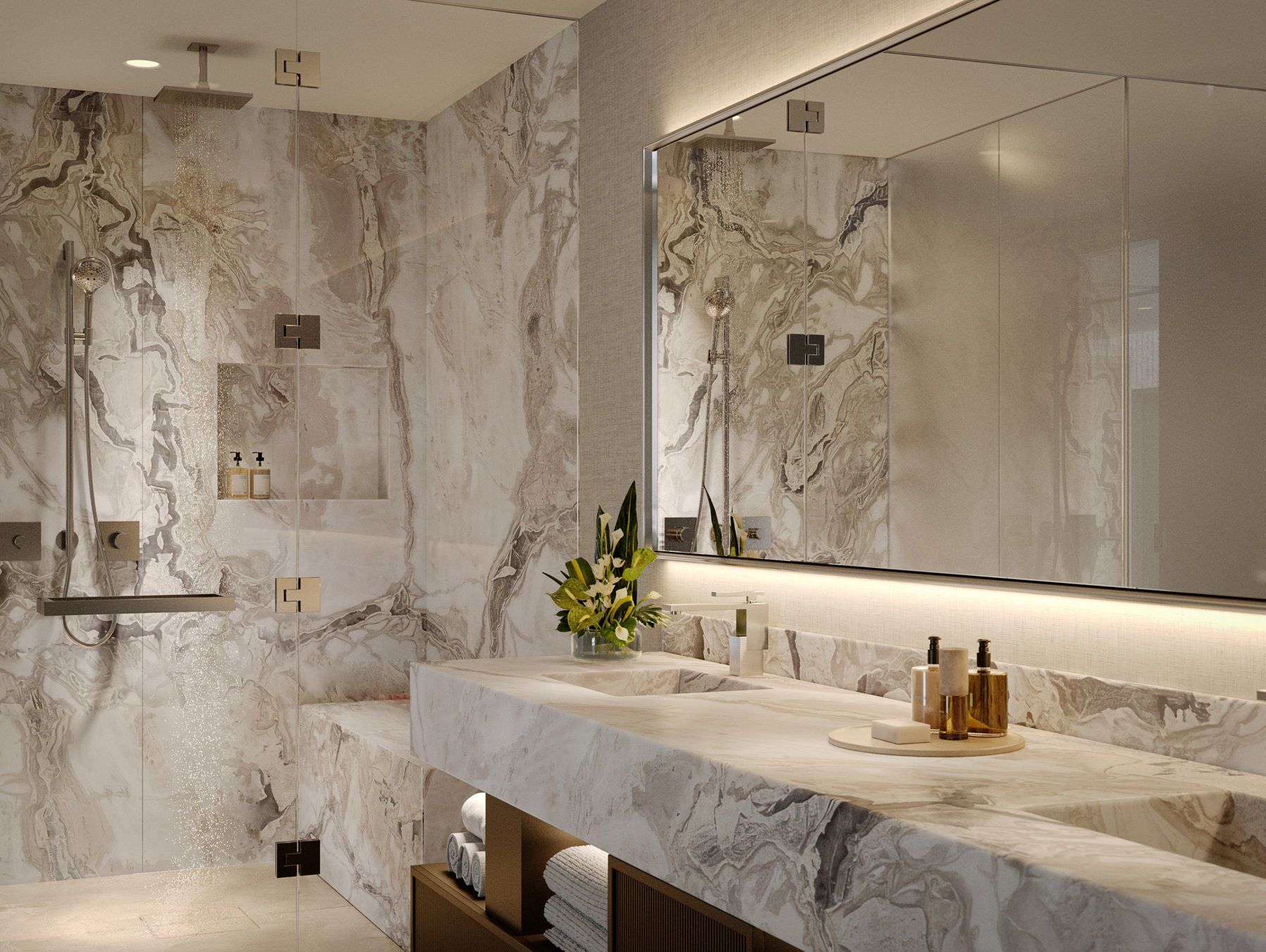 The luxurious Waterfront Residences in East Bay Harbor Island.