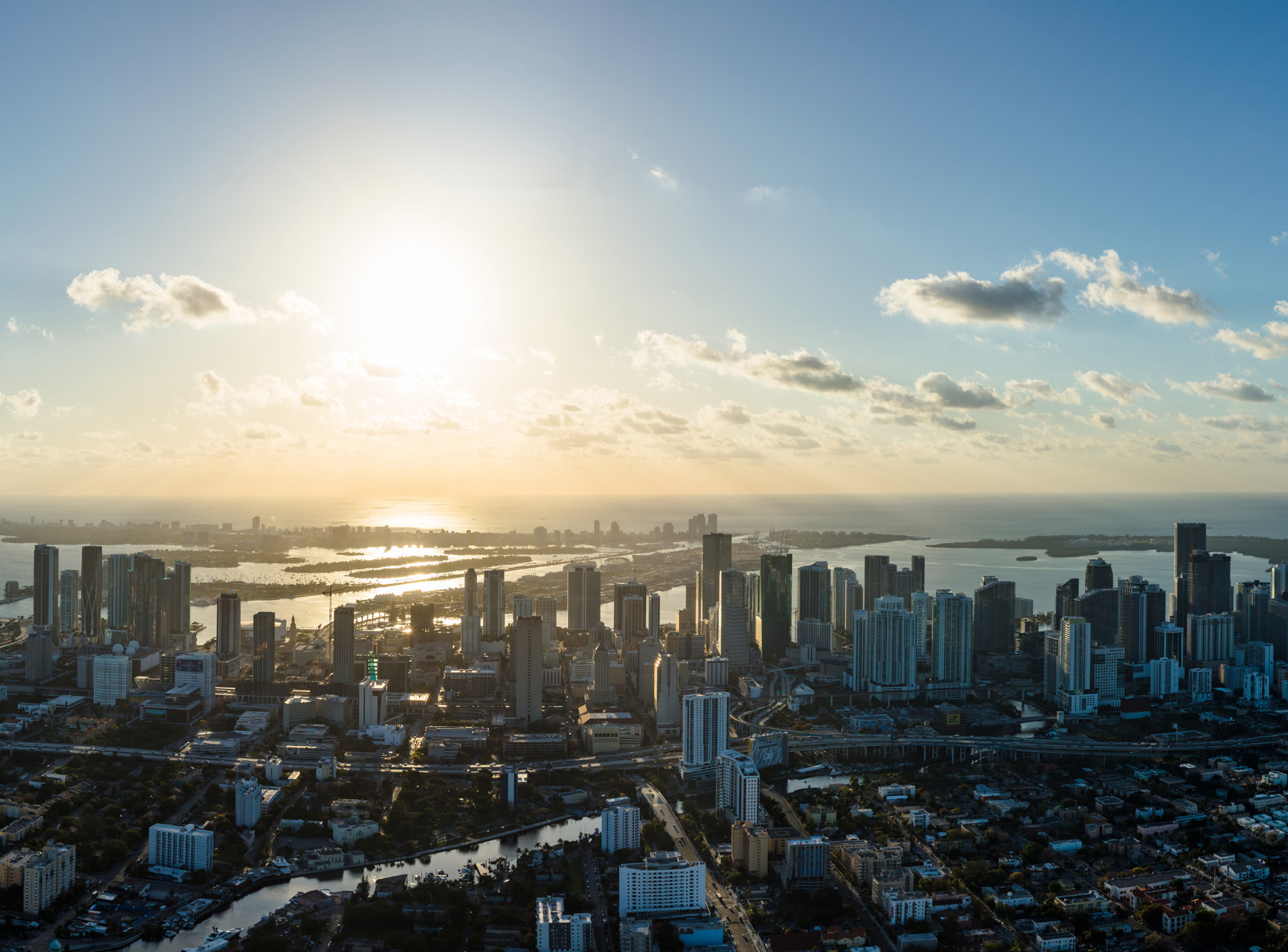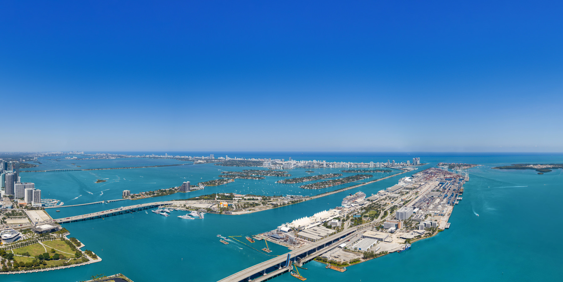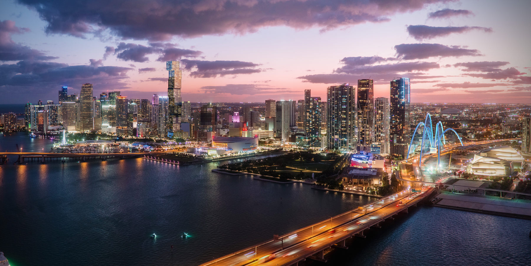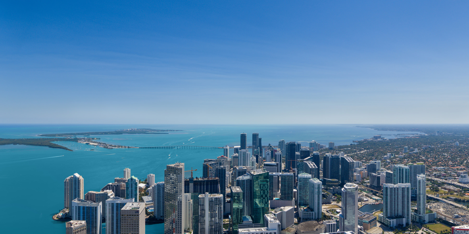 Unobstructed views of downtown, Miami Beach and Atlantic Ocean